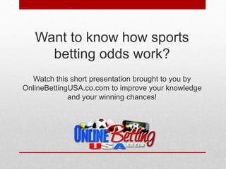 Before you start betting on sports the first thing you need to know is how the odds work.